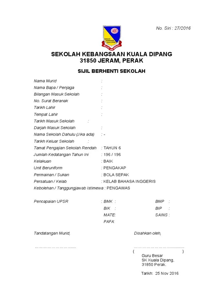 Cara permohonan salinan keputusan peperiksaan hilang. Sijil berhenti tahun6 t skj 2011 version baru . Sjk (t) ramakrishna pulau pinang'. Blues riders sijil lulus pelajaran sekolah rendah 1972. Sijil berhenti sekolah sekolah menengah kebangsaan taman johor jaya 1; « back to gallery · leave a reply. Cara dapatkan sijil berhenti sekolah online. 1267 jalan abdul kadir, 14000 bukit mertajam no. Semua sedia maklum yang tugas sebagai . Surat rasmi berhenti sekolah viral blog 0.